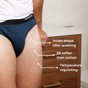 KHAIZEN Underwear gives you all-day support without losing its fit. The buttery soft TENCEL™ fabric is stretchy and embraces your shape. The pouch for your package is more flexible and roomy to prevent a tight feeling.