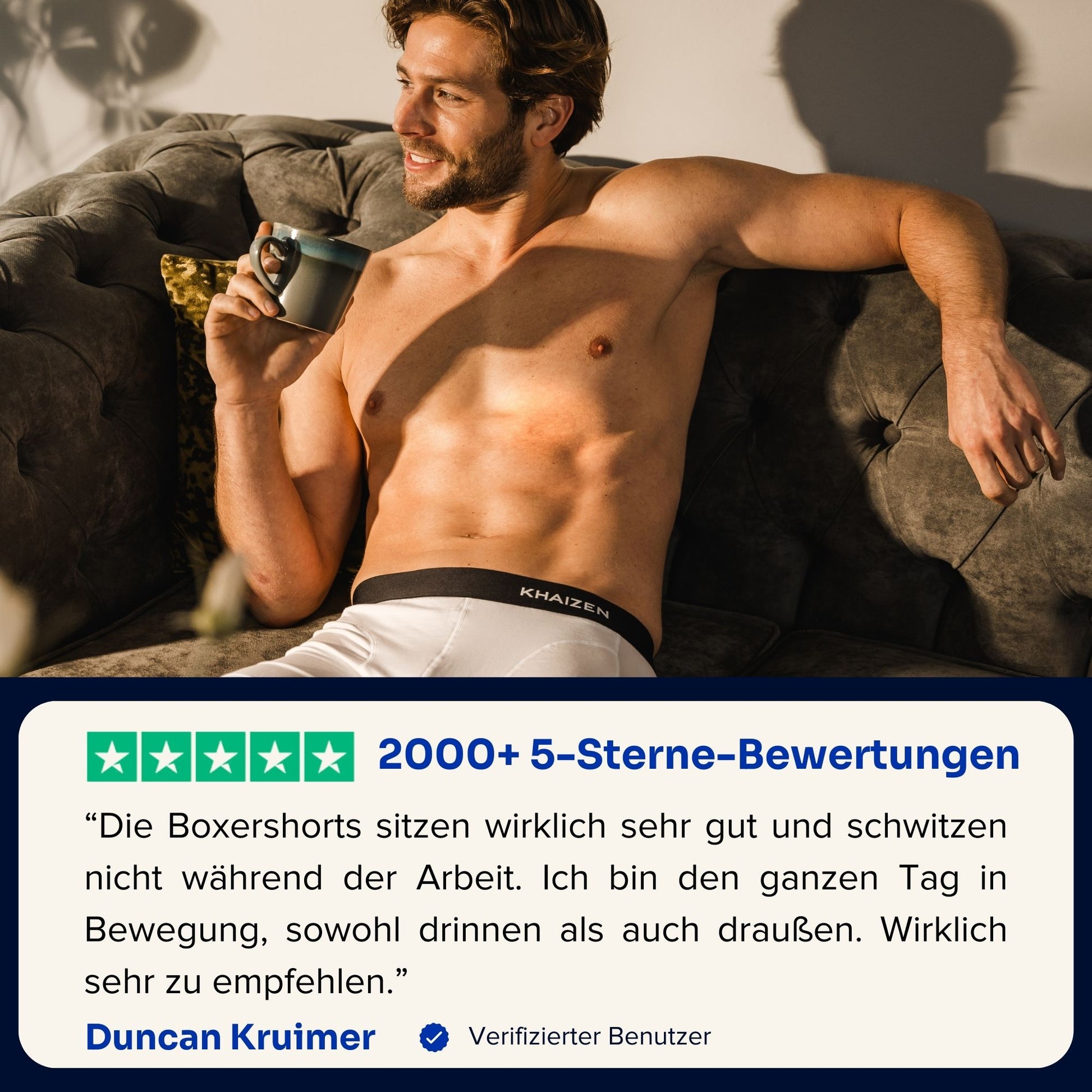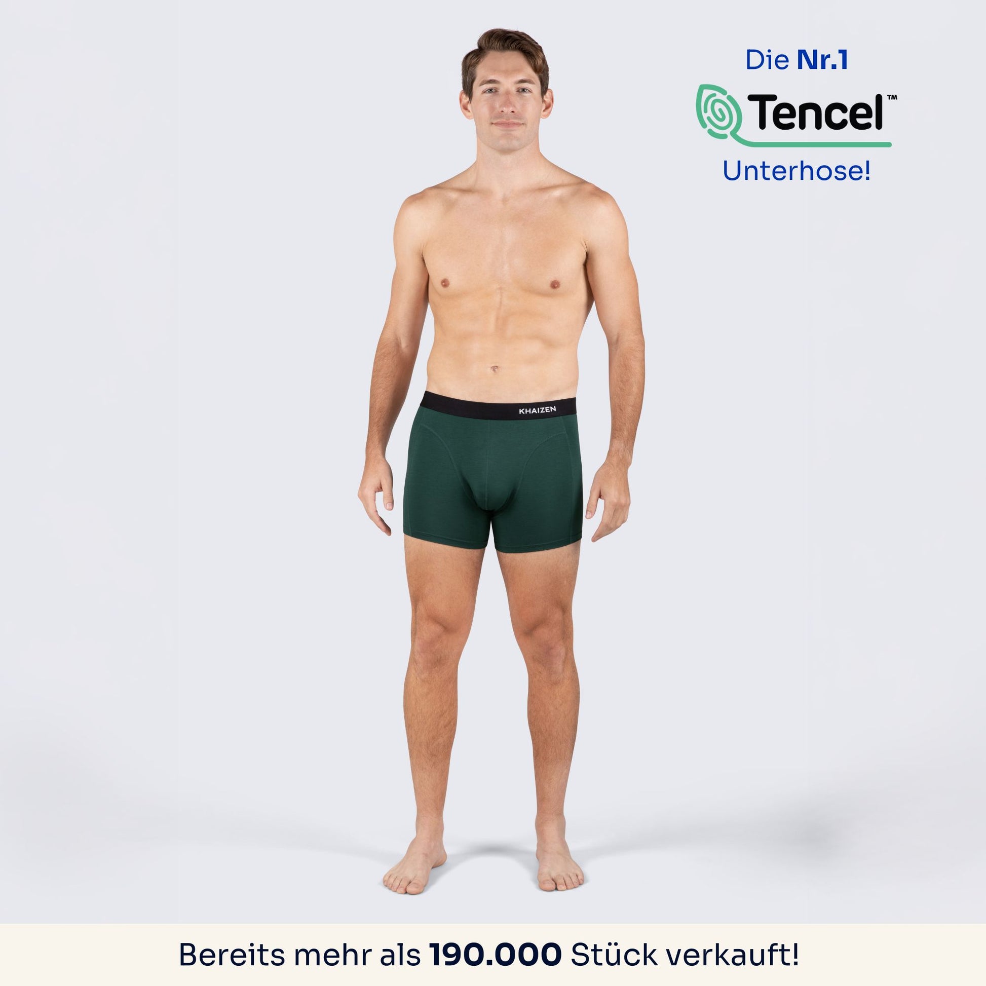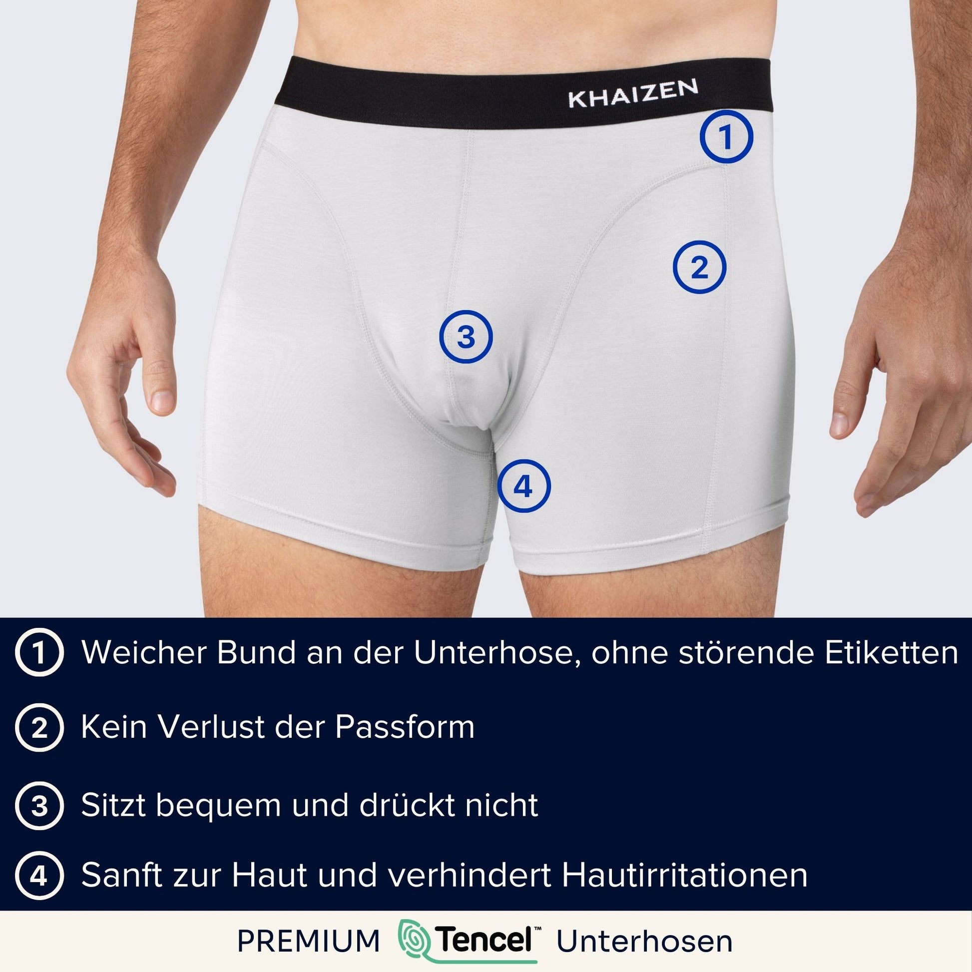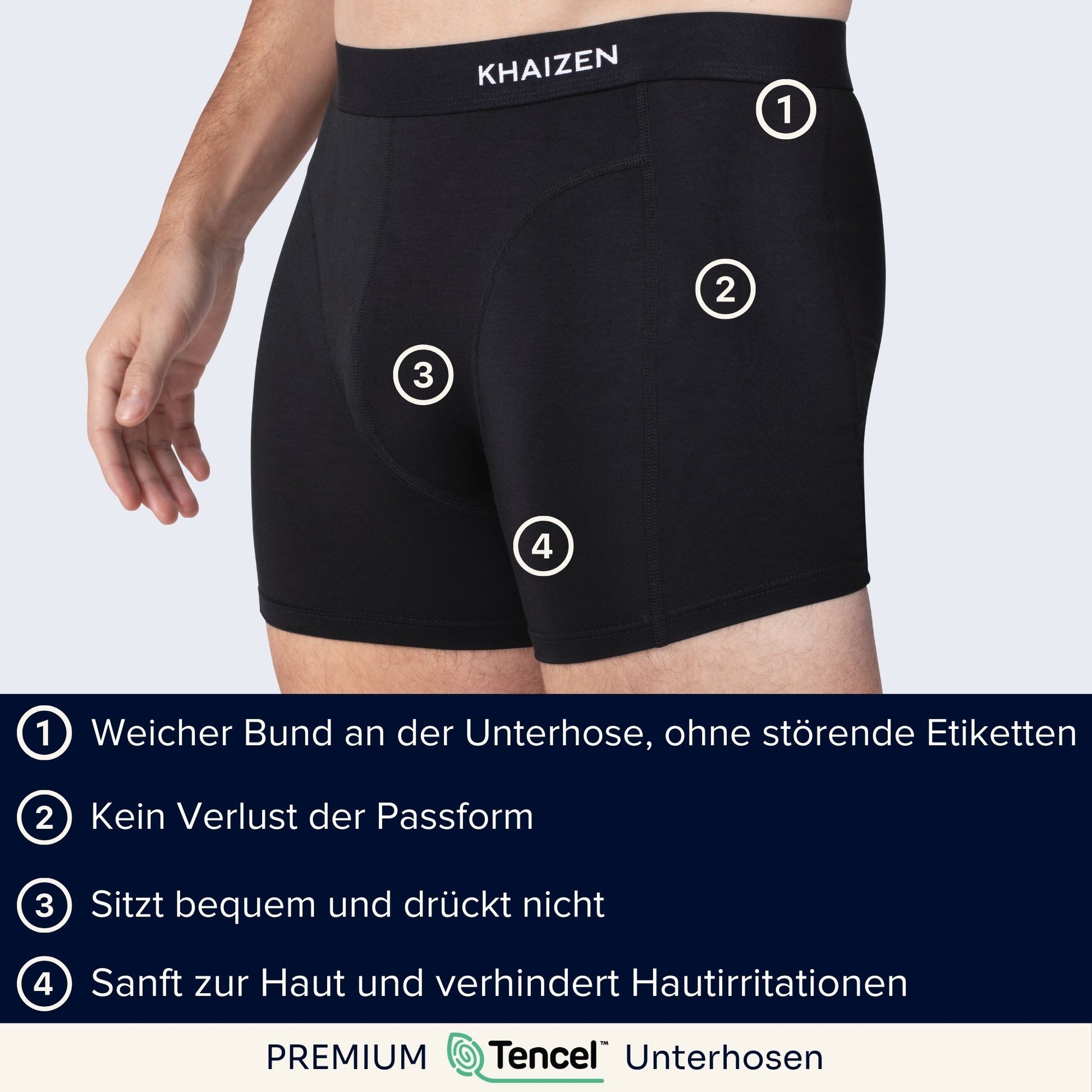 Mit KHAIZEN Unterwäsche genießt du den ganzen Tag optimalen Halt, ohne dass die Passform nachgibt. Der butterweiche TENCEL™-Stoff ist elastisch und passt sich perfekt an deine Figur an. Der ergonomische Beutel bietet mehr Flexibilität und Raum, damit du dich jederzeit frei und bequem fühlst.