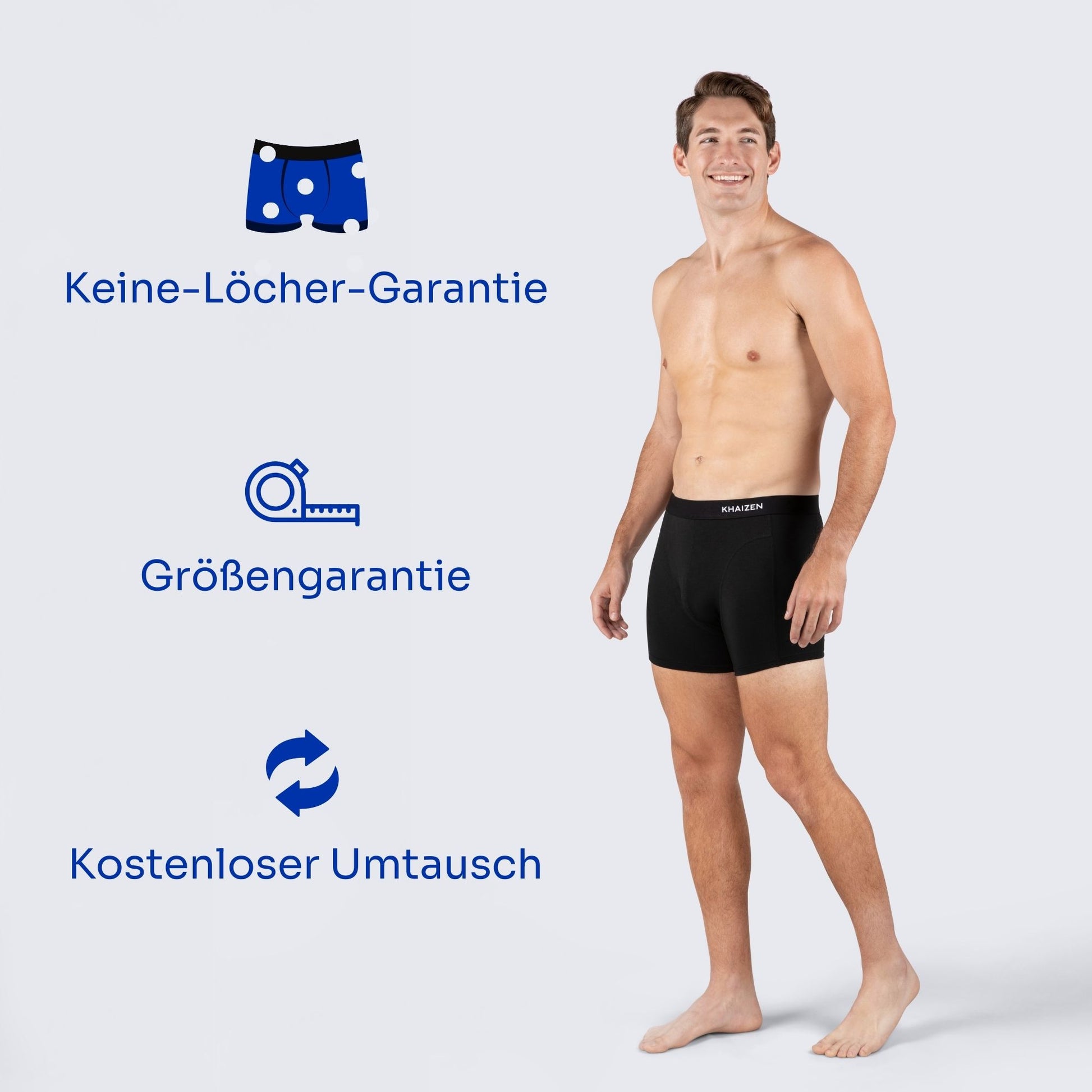 Du suchst praktische, zuverlässige und langlebige Unterwäsche, die länger hält? Wir stehen zu der Qualität unserer Produkte – deshalb gibt es bei uns eine Verschleißgarantie! Sollte innerhalb von 6 Monaten etwas nicht passen, schreib uns eine Nachricht, und wir lösen das sofort!